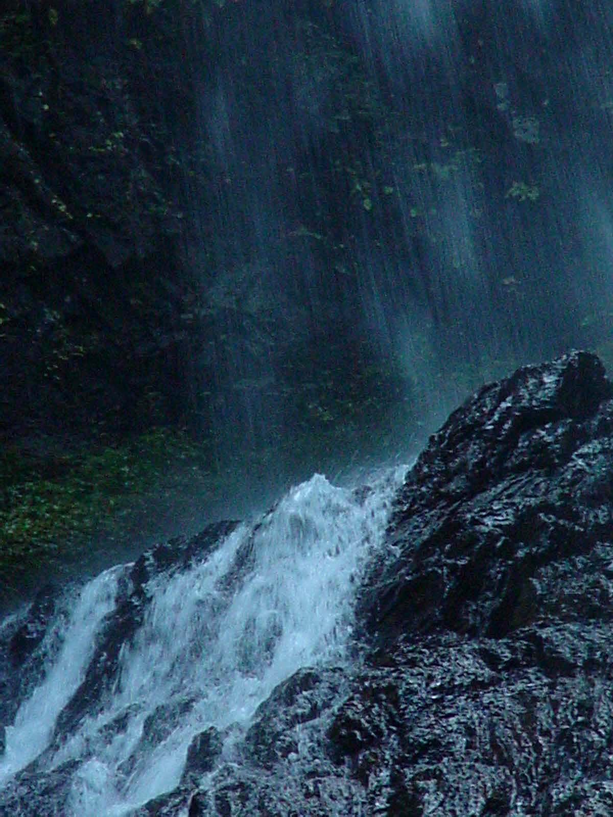 私の汎用カメラでは雄滝の下流の岩壁ぎりぎりまで下がって画面いっぱいの構図が限界だった。