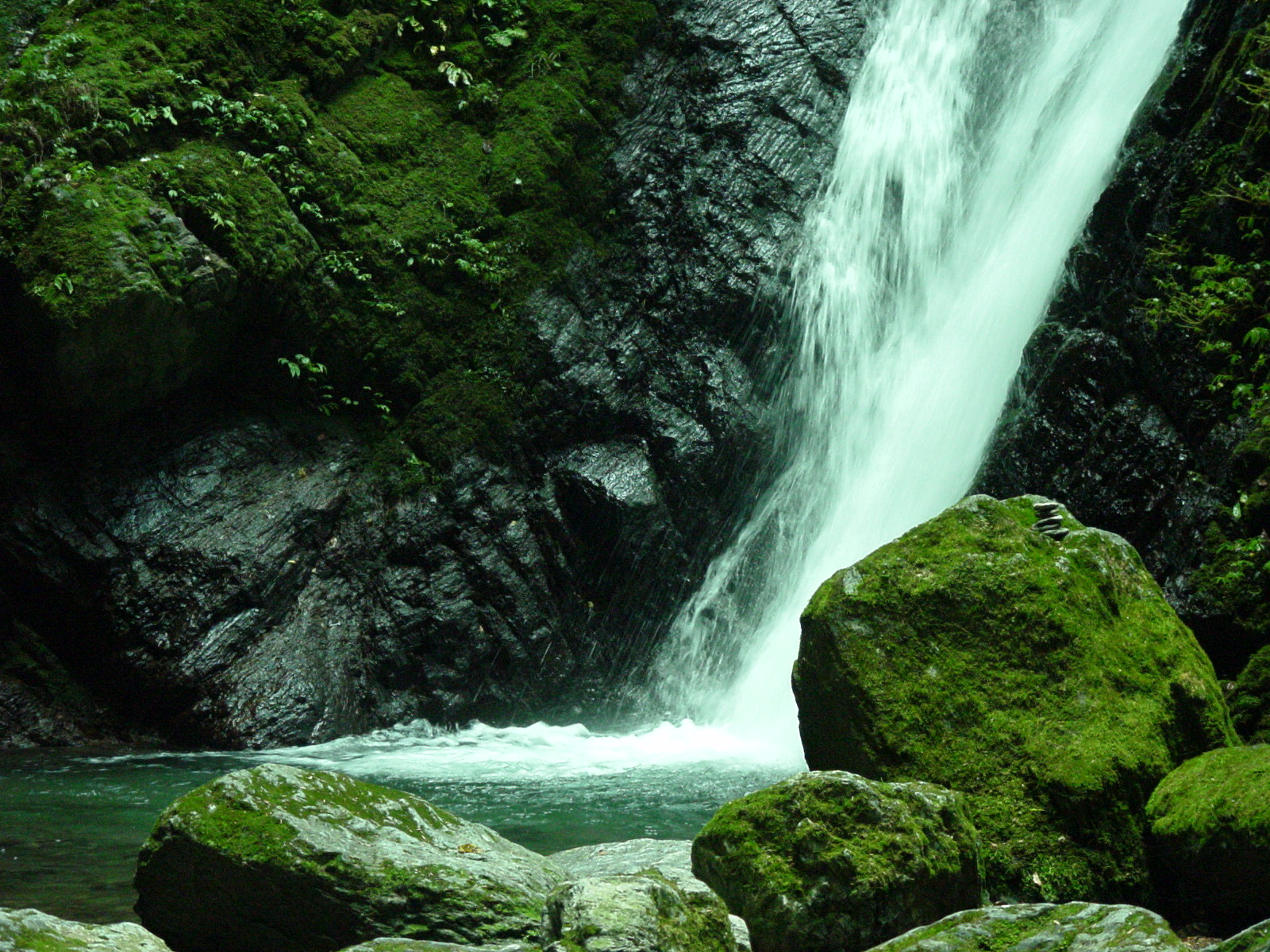 雨乞いの滝 2006/10/26 徳島県名西郡神山町神領 雌滝落差:45m 3段 雄滝落差:27m 滝の向き=北 滝前の川原はスペースが少なく足場も悪いので広角レンズは必須アイテムだ。 高根谷川に落ちるこの滝は鮎喰川に注いで行く。 神山町は総面積のうち約80%以上が急傾斜地の山林で標高1,496mの雲早山を最高峰として1,000m級の剣山山系が重畳し、山脈を縫って流れる全長43kmの鮎喰川は徳島市で吉野川に合流する地域に恵みをもたらす親しまれている河川だ。 この一帯の地区名が神領というのも由緒があることだろう。 |