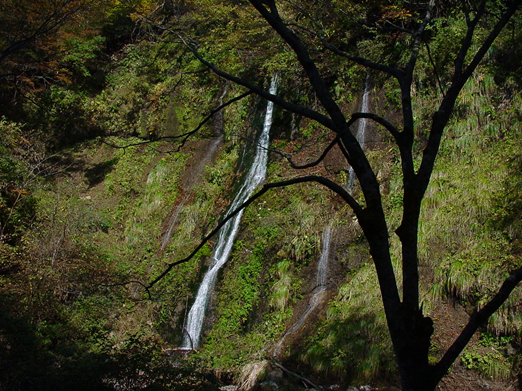雨滝の数十メートル下流の山肌を這うように静かに落ちる。
