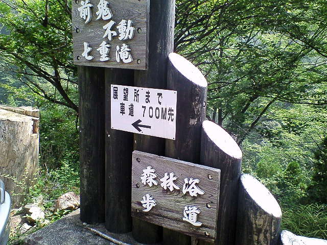 この時点で六段目と言われる林道展望台から流れ口が見えるのは七段目だと確定できた。 この確認は林道展望台からのこの写真と照合することで最終確認できる。 |