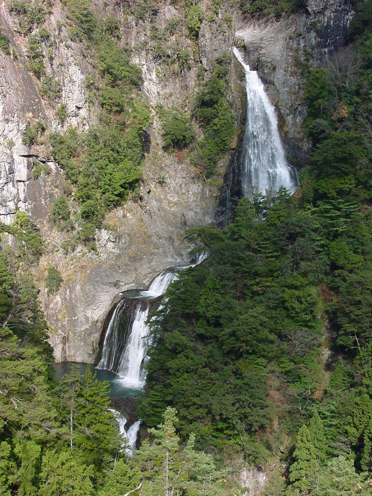 大滝の下に4〜6段を確認7段目の落口が少し見えている。 |