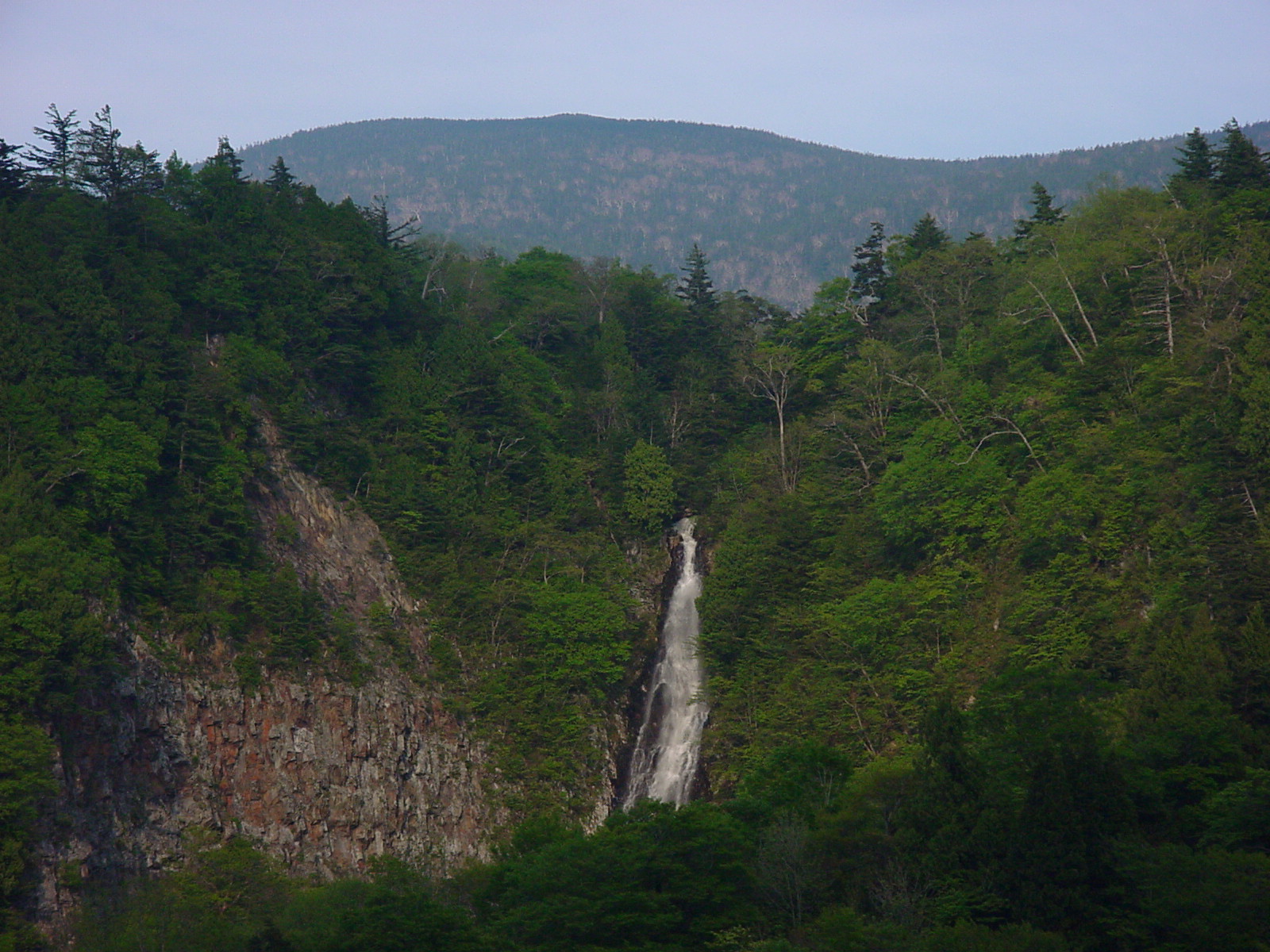 芳沢不動滝と近く西吾妻スカイバレーライン上展望台から対岸に見える。