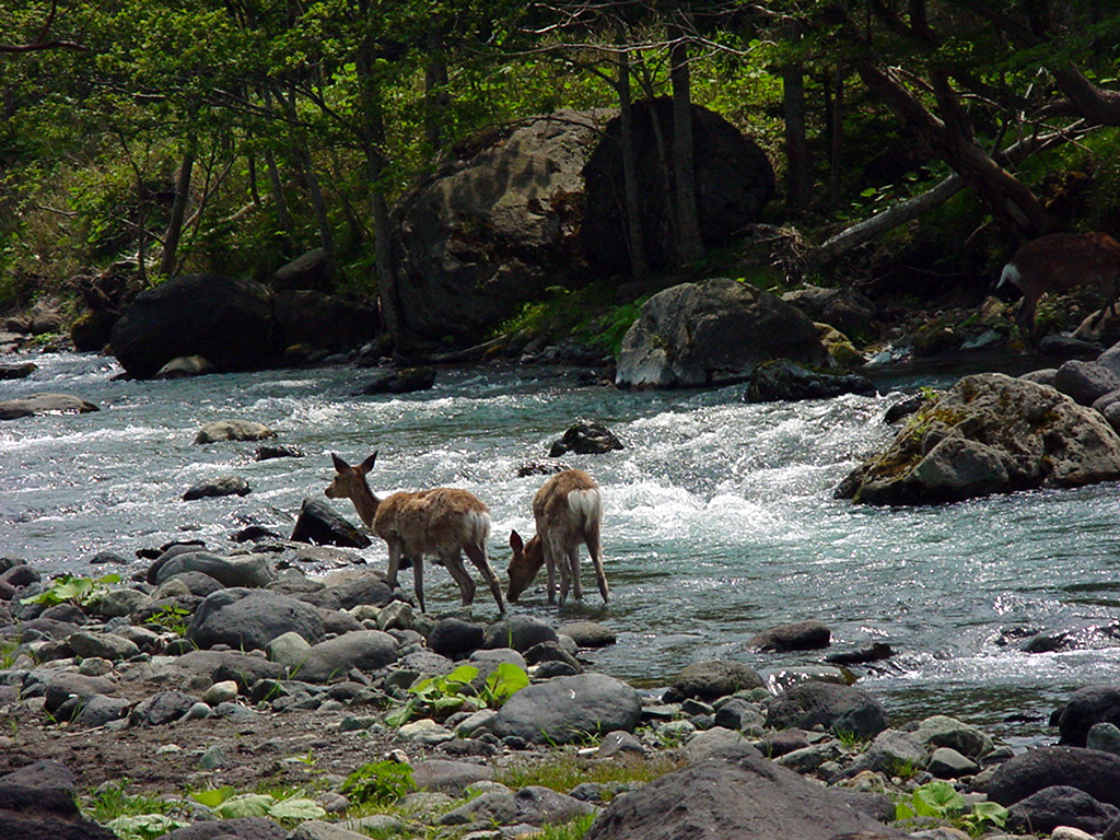 知床イワウベツ川 2005/06/23 斜里郡斜里町 知床半島が、ユネスコの世界自然遺産に推薦された。 1972年にユネスコの総会で採択された世界遺産条約に基づき登録される。 現在世界の登録件数は、144件で日本では屋久島(鹿児島県)と白神山地(青森、秋田県)の二カ所。 最終的な可否は、7月10日〜17日にアフリカのダーバンで第29回世界遺産委員会で、審査・決定される。 羅臼町では「道の駅」などに決定の日をカウントダウン表示し、地域の期待ぶりを覗わせた。 しかし、町の人は鹿の被害に早くも悲鳴をあげている。 屋久島も同様だ。 |