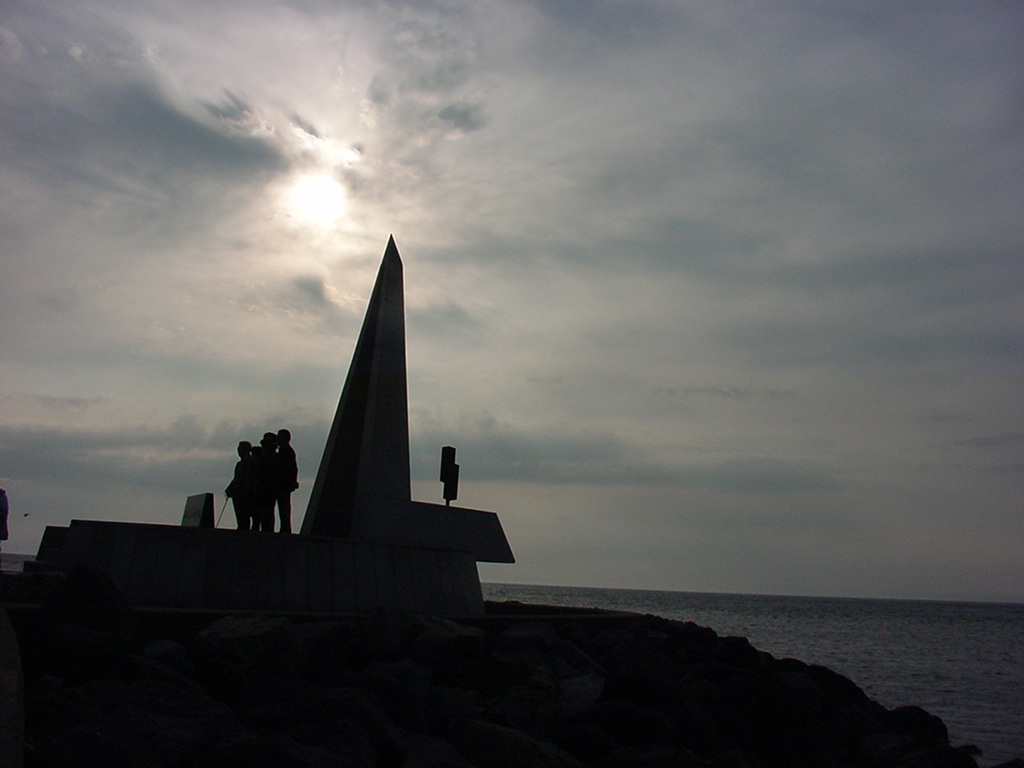 宗谷岬 2004/6/20 北海道稚内市大字宗谷村 言わずと知れた日本列島の最北端。 苫小牧から札幌>石狩>R231>留萌>稚内と佐々木氏の名車『ランドローバー』をオーバーヒート寸前まで吹かして一気に北上。 風に朽ちた番小屋が所々に現れては消える北海道西岸の厳しいR231沿いの一面を見た。 「な〜にもないでしょう?」と最北端ガソリンスタンドの老婆が言った。 「この歳になって自分の国の端っこをしりました」と応じたが空しさを憶えた。 岬の先には、冷戦時代対峙した悲しい物語にことかかないサハリンはすぐそこだ。 何故か海岸の砂の色は赤かった。 |