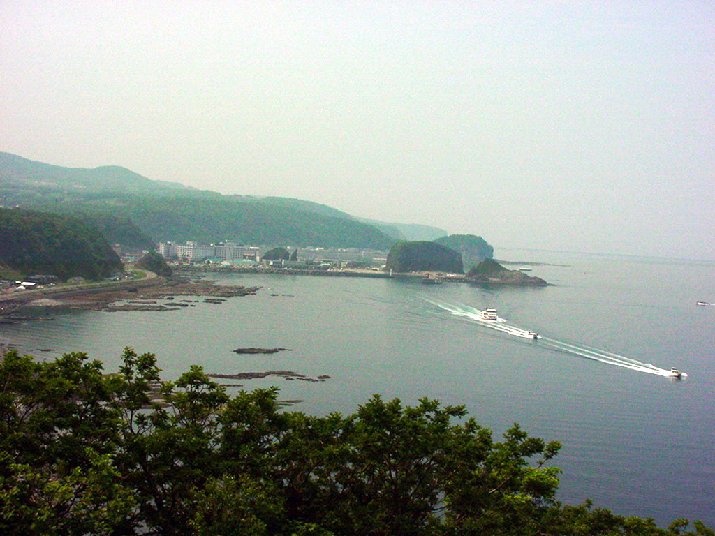 ウトロ漁港付近 2005/06/23 斜里郡斜里町ウトロ ウトロの語源は「ウトゥルチクシ」Uturu-ci-kus-i(その間を我々が通る所)。ウトロにはオロンコ岩、三角岩、帽子岩、ロ−ソク岩などの岩があるがこれらの岩の間を通ったというのが地名の由来だろう。・・・ 北海道のアイヌ語地名・佐藤和美・・・とのこと。 ウトロ漁港は1810年頃シャリ場所を統括していた時、ウトロにも番屋が設けられたのが始まりという。 近海に魚が豊富で知床観光船乗場がある。 カメのような形をしているチャシコツ岬、高さ58mの学術自然保護地区に指定された岩オロンコ岩、などの自然美がバスターミナル・民宿・ホテルの密集で台無しになっている印象をうける。 |