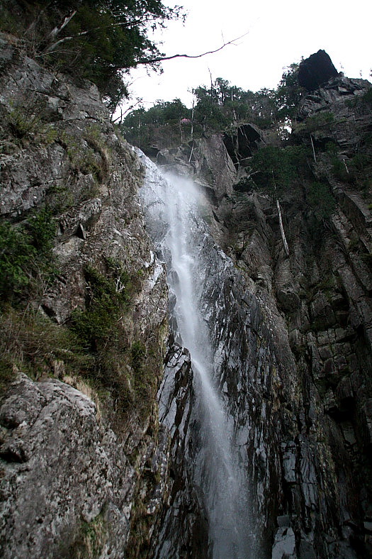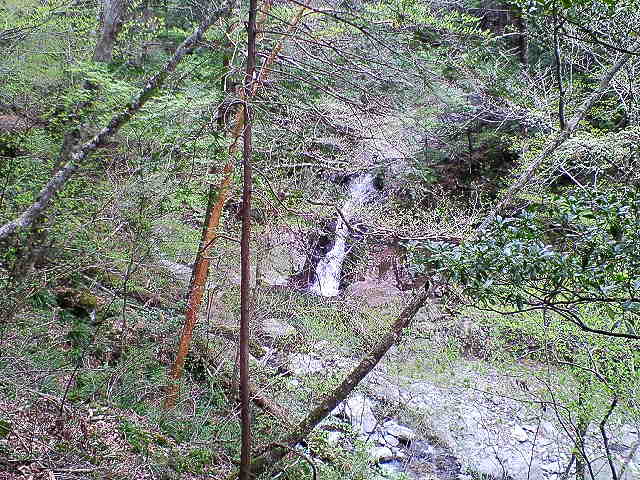 御来光の滝 2008/05/01 愛媛県上浮穴郡久万高原町若山 落差:102m 滝の向き=南 9:00丁度に犬吠の滝の見える対岸を通過。続いて9:04魚止の滝の上通過。