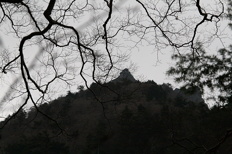 御来光の滝 2011/04/30 愛媛県上浮穴郡久万高原町若山 落差:102m 滝の向き=南 7時30分過ぎカーブミラーから降下開始>堰堤8時03分>ブルーシート高巻き8時19分>最初の渡渉8時45分>七つ釜8時51分>南沢9時56分>高巻き>遠望ビューポイント10時27分到着。 何時ものペースより30分以上遅れている。 この日の空模様は曇天だったため滝壷の虹見は期待できないことが解っているせいか自然と滝壺10時の虹タイムを気にしない足取りになっていたのかもしれない。 遠景ビューポイントで、今まで見向きもしなかった石槌山南尖鋒を撮ったりしていた。 |
