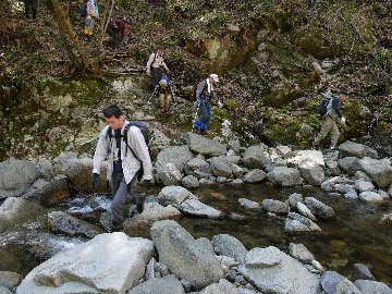 河原を歩いて出発 8:05 |