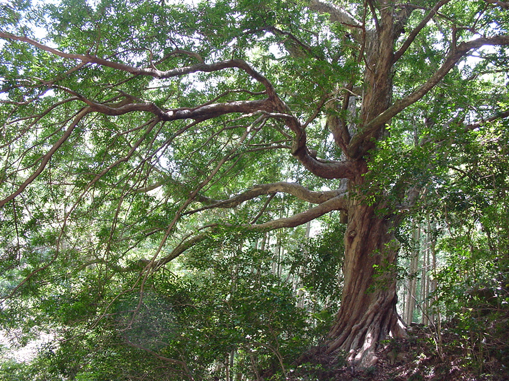 たこ入道のように枝を伸ばした大木が滝前に茂っていて殆ど陽光は差し込まない。