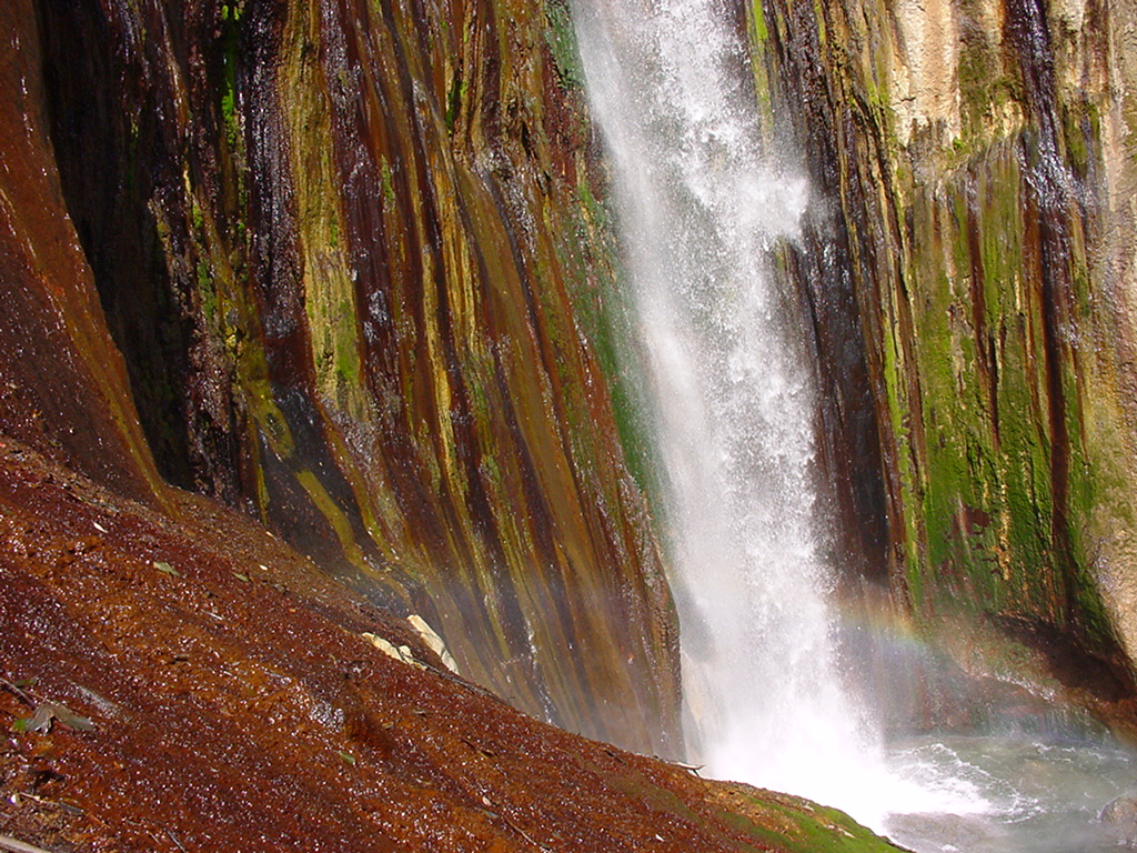 9時半頃が見頃時刻の虹が時間と共に沈んでいく滝壷はDreamyな淡色調が際立つ。