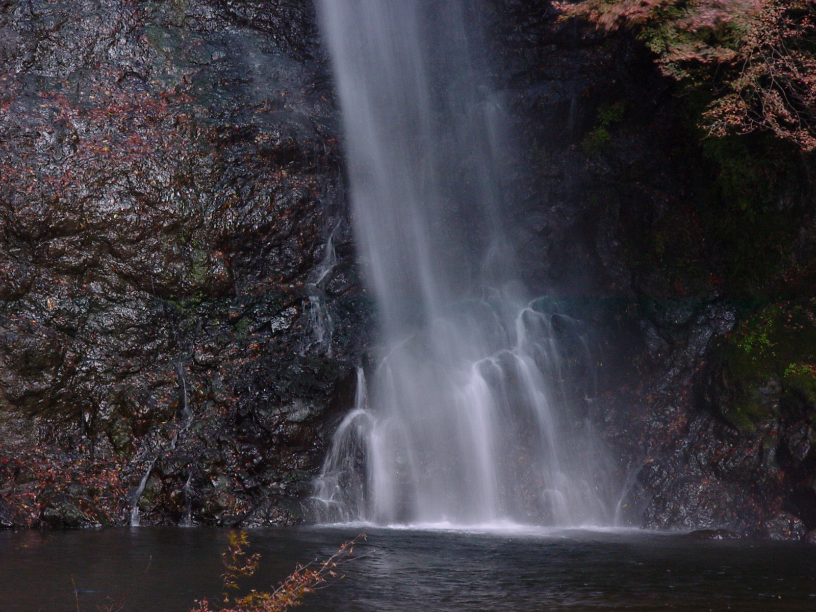 箕面の滝 2006/11/29 大阪府箕面市箕面公園 落差:33m 昨年の03/20の肌寒い日に訪れた際は、余りにも寂しい滝姿だった。 ”春にはまだ遠く冬の佇まいの木々は生気がなく、風邪気味の吾にマイナスイオンで活をいれてくれた。”と記した。 この滝は関西では紅葉の代名詞だ。 そんなに綺麗な紅葉滝なら一度拝んでおいても・・・と再度訪れたのだが・・・。 内心は”観光滝では・・???”と駄目元と思いつつJR大阪駅から阪急宝塚線に乗り換えた。 乗ってすぐ(やたらに”大阪のおばちゃん”が多いなあ・・)と漠然と思っていた。 (週日の昼間はこんなものか)とも。しかし次第に(もしかして・・箕面の紅葉見物か??)と思いつつ良く見ると(そうに違いない)と確信に変っていった。 リュックやスニーカー、そしてそのはしゃぎ具合は買い物や日常の用事とは明らかに違う。 ただ石橋駅で箕面線に乗り換えるとこの疑惑が確定する。そして確定した。 (これだけの人口が滝前に詰め掛ける・・・)と思っただけで虚脱と恐怖感に。 |