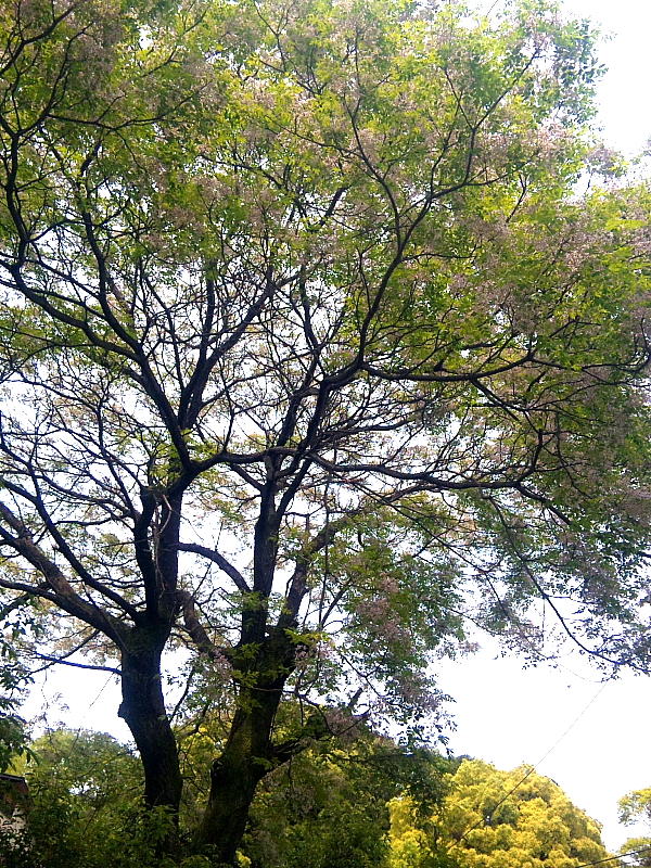 栴壇の大木 2011/06/04 京都市伏見区 稲荷山 <<追記>> 長らく「栴壇」の大木を知らなかったが・・・ 偶然に我がヤサの近くにあることを知り、参考に掲載いたします。 6月初旬撮影。 大辞林によると センダン科の落葉高木。暖地に自生、また庭木・街路樹とする。枝先付近に大形の羽状複葉を互生。 初夏、紫青色の小花を円錐状につけ、晩秋、黄色い楕円形の実がなる。 材は建築・器具材とする。 古名オウチ(楝)。 ビャクダンの別名。 ・・・だそうです。
