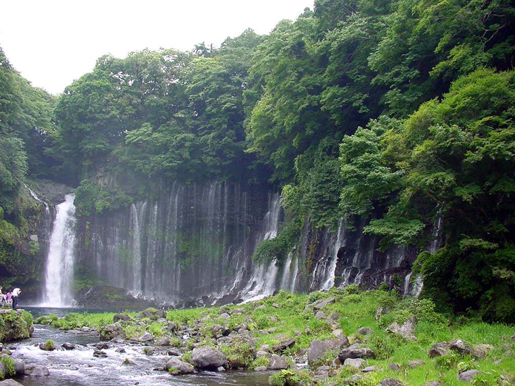 溶岩断層から、富士山の雪解け水が長い年月の末湧き出し滝となった。