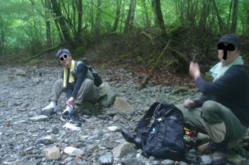 ・6:19 白川八丁:靴の水抜き休憩。 :・・・(1時間19分経過) |