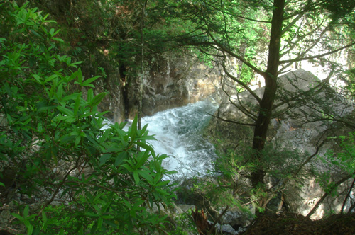・8:36 一の滝、二の滝前到達。大迫力!! :・・・(3時間36分経過) |