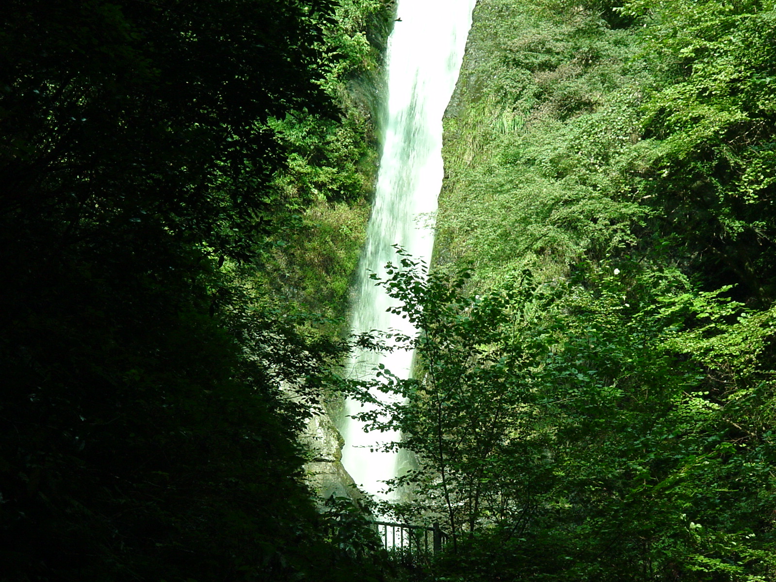 洒水の滝(しゃすいのたき) 2006/10/11 神奈川県足柄上郡山北町平山 落差:3段落差合計114m、一の滝:69m、二の滝:16m、三の滝:29m 滝の向き:東向き この日は前夜京都駅からの高速バスで横浜駅6:30着の予定が高速道路の渋滞が激しくて急遽、途中の厚木でおり小田急の小田原線で新松田を目指した。 結果的にこの判断は大正解で予定より一時間早く洒水の滝に到着できた。 京都から同乗の九州出身の小田急沿線にお住まいの主婦と九州の滝訪問の話などするうち「洒水の滝は厚木で降りたら横浜より近いわよ。私も途中の駅まで乗りますから」と助けられありがたかった。 |