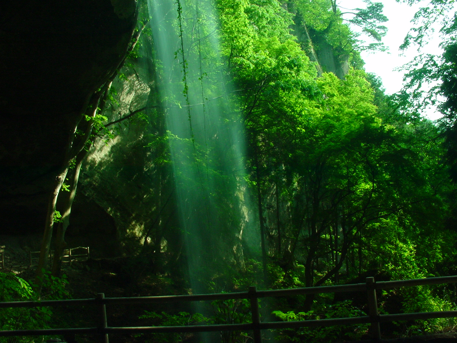 西向きの滝のため3時過ぎのこの時間では裏見が映える。