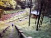 きつい傾斜の階段を降り左側上流まで5分程で滝前広場の草地に着く。