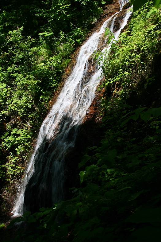 梯子の下に登って行くと滝身が逆くの字に曲って上段が続いていた。