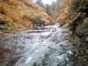 "桃洞・赤水の分岐(40分程)"を過ぎ「桃洞滝」残り500mの地点から石床川原の道となり、一度(飛び石橋?)で対岸に渡りその先のカーブを曲ると間もなく「桃洞滝」が見えてくる「野生鳥獣センター」から全60分程のコース。
