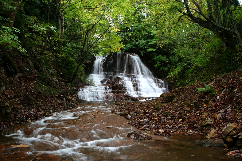 不動滝 2010/10/10 青森県東津軽郡平内町外童子 清水川上流 西の沢 落差:7m 10月9日朝、写録の旅人さんと合流したのが午前5時半過ぎの駅前高速バス停・・・。 三連休首都高は渋滞していたが、勝手知ったるBunks名ドライバーは「首都高」>「常磐道」>「東北道」と一気に北上、青森県"大鰐弘前IC"で東北道を降りたのが午後5時10分。 P泊先の"道の駅・ひろさき"に到着して、12時間760kmの長距離ドライブに感謝をこめ宴のハッピータイム。 明けて10月10日小雨の朝「猿賀神社」>「最勝院」と雨上がりを待つ徘徊に、何気なく話が”ホタテ醤油”に向いた。 写録の旅人さんの脳内コンピューターが、はじきだした答えは”青森県平内町”と”大和山 不動滝”。 写録の旅人さんが以前訪れたr123青森市側の”月光の滝”の先が平内町の”大和山 不動滝”に至るのだが、峠越えに失敗し平内町側から訪れるのが正解とのこと。 その平内町は”ホタテ醤油”名産地の陸奥湾に面している。 うまく脳内リンクしたようで、”めでたしめでたし・・・”と青森環状バイパスに乗ったのでした。 |