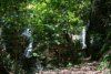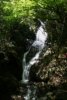 山田川沿い遊歩道を歩10分で右の雌滝、左の雄滝(段瀑)の正面朱橋に着く。