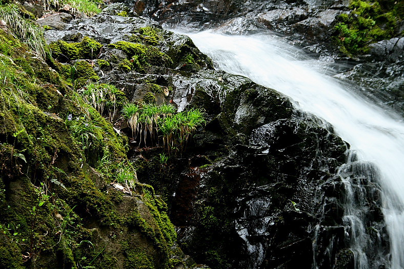 三脚は持ってきていたが面倒なので石に腰掛てスローシャッター手撮り。