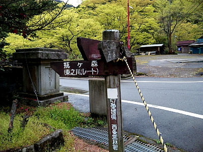「大宮橋」に左折の角に「瓶が森登山口(東之川ルート)」の標示があるのを見逃さないこと。