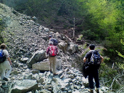 以前から崩壊している石槌林道現場の手前で車を降り歩きはじめたのが9時13分ころ。