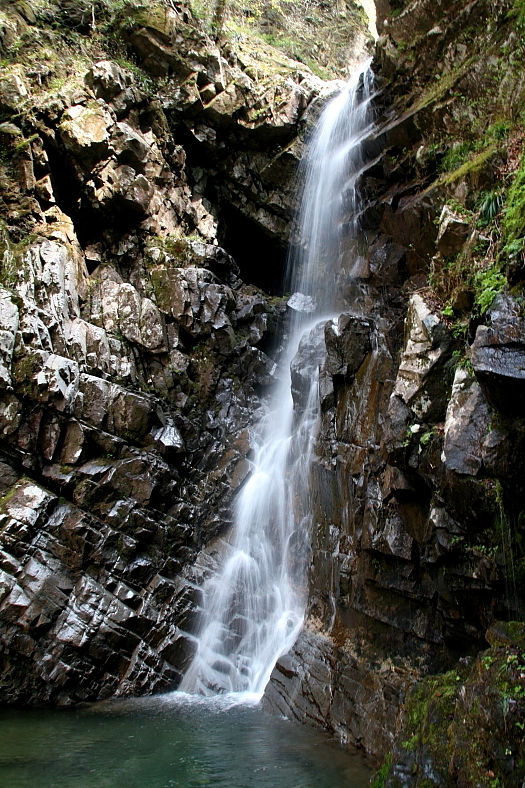 滝右岸に大穴が2箇所明いている風貌と人々の感覚穴場な滝という意味を込めて