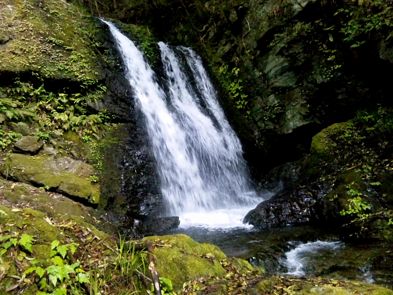 朝の目覚ましに少し林道を進んだ廃屋の裏に落ちる我輩命名「裏屋の滝」に
