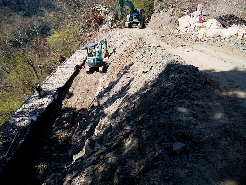 第一崩落現場は工事の最中でここから諏訪神社まで7.5km。