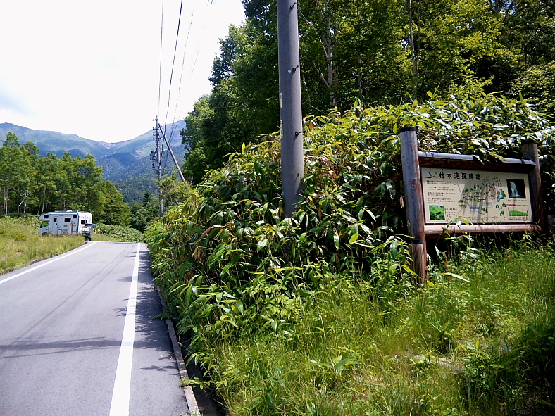 車を停めた場所(「御岳少年自然の家」の門前)からは全く見えない滝見道入り口。