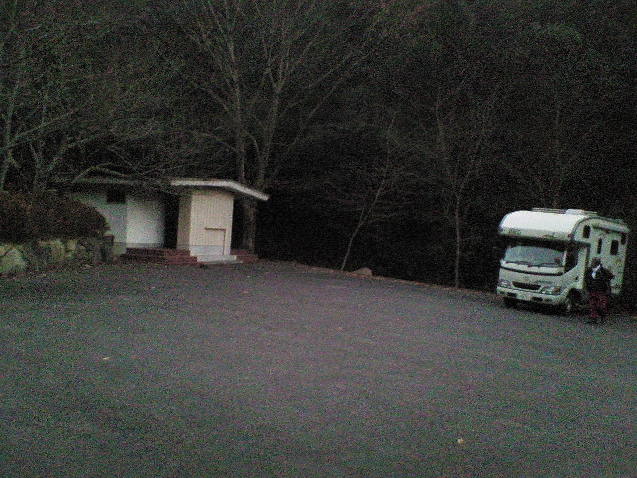 日の出前で駐車場はまだ暗い。