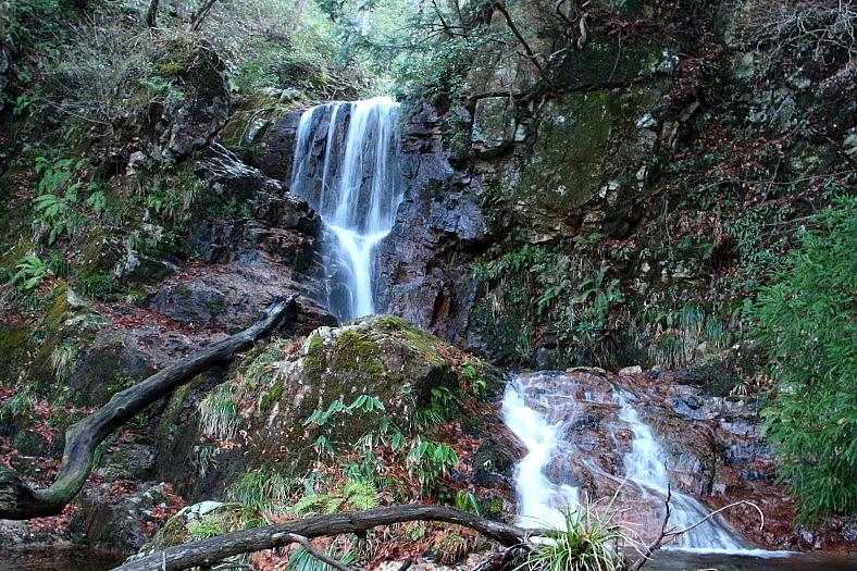 上餅ノ木口から30分程上流の遊歩道脇に落ちる滝。