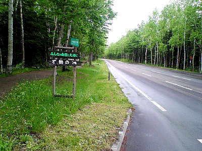 滝看板は容易にみつかり左側の林の奥に美瑛川が流れていることに吸い寄せられてしまった。