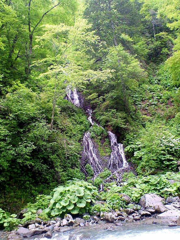 「敷島の滝コース」忠別川の対岸に落ちている。
