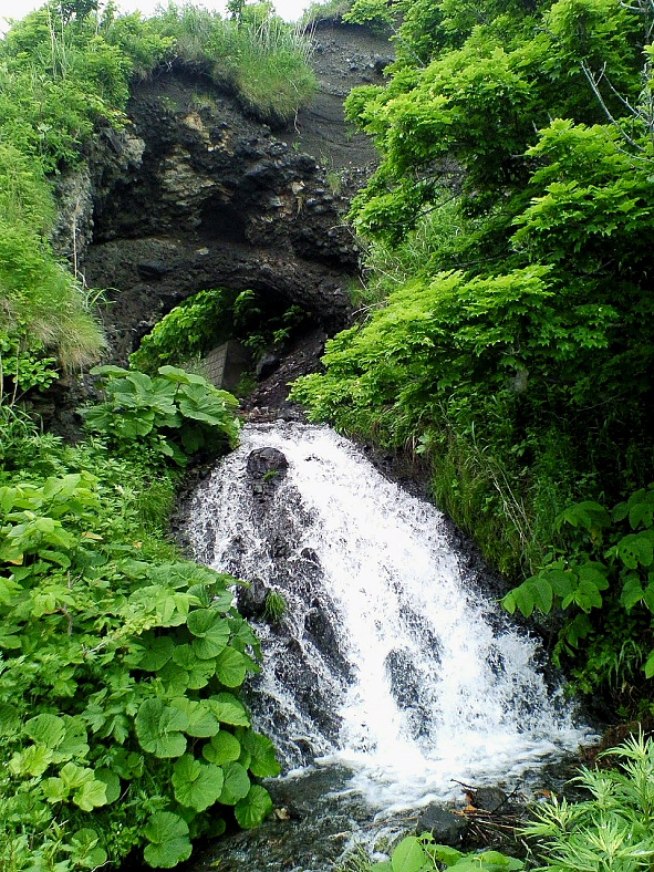 3時間以上経過し乙部町が終わるころ道路脇にこの奇妙な滝が眼に飛び込んできた。
