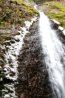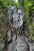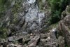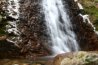 上のキャンプ場駐車場から案内標示に従い”子育て観音と夫婦岩”、「オウネン滝」を経て登山道を1km弱程(約30分)で「扁妙の滝」下段を見上げる岩の河原に着く。