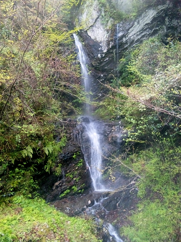 滝見台10分程で元来たr40を引き返す道路脇には無数の”にわか滝”が落ちていた。