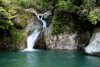 「長又の滝」:愛媛県西条市からR194南下し寒風山トンネルを出て1km程を鈎形左折した一の谷旧194号線に入り県境の寒風山隋道を目指しジグザグ道を上昇して行く。2〜3km程行った右手の「林道寒風大座礼西線」の道路標柱を右折して土道を3km程で長又橋の左側に二筋になって落ちる滝。