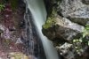 道路脇に駐車して右岸から川を遡上すると2~3分で右岸の岩を伝う「雌滝」とその表示板。