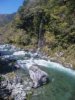 渓谷に降り吊り橋を渡ってすぐ滝に着く。