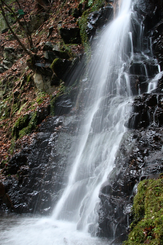 滝壺の前に何段かの渓流があるのだが倒木や枯れ枝が多く絵にならない。