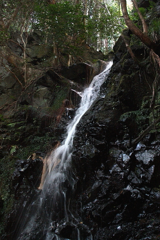 ひぐらしの滝 2009/11/06 京都府京都市右京区嵯峨清滝月ノ輪町 落差:10m (表参道七合目)休憩小屋で愛宕神社に荷物を運び揚げている人に(明神谷トラバース口)の情報を尋ねた。 おおよそ理解できた。 「谷の上から下るのは危険」の基本アドバイスと「まむしの多い谷」の副情報のほうも恐ろしい。 下りの体力消耗の少ないのも魅力であり(明神谷トラバース口)の確認探索にきたのだ。 (明神谷下の取り付き)からアタックし上の(明神谷上トラバース口)に出て(長坂谷)を(落合橋)に下って行くのが安全なようだ。 |