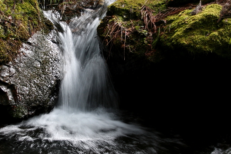 テーマB左俣谷は「毘沙門の滝」から上流に5分程林道を行くとこの分伎路になる。左の暗く写っている林に入ってゆくと「5m滝」下流の小滝群に劣らない素晴らしい谷だった。 多分「菩提の滝」の上流に通じる登山道に出ると思われる。 右俣谷の水量は枯れる寸前の状態だったが林道は地図によると高山寺に通じている。 又、登山道は「菩提の滝」上流のため池「沢の池」に通じているようだ。 |