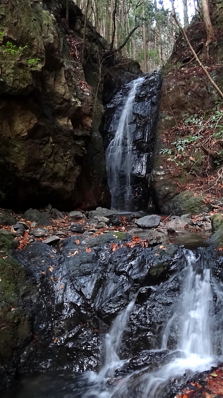 菩提川が岩で細くなっているので長靴なら渡渉でき滝下まで渡ることができる。
