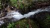 20mロープを滝下に垂らして降りると滝壺から流身が見えるが、夏季は枝葉が繁り最上段が見ずらい。
