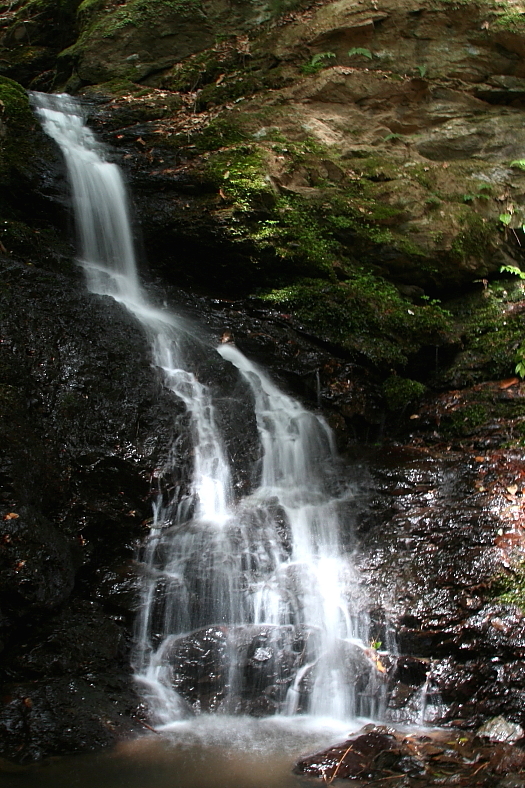 滝壺から見る二の滝は水量が少ないせいか小さな滝に見えてしまう。