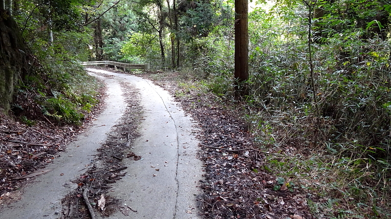 車谷の滝群 2015/09/23 京都府木津川市山城町綺田車谷 天神川 落差:一の滝10m、渓流瀑、F1:1m、F2:1.5m双瀑、F3:4m、F4:3m、F5:10m長滑滝、F6:7m、2段 滝の向き=西 次に本日の本命である「車谷の滝群」の「一の滝」にやってきた。 「一の滝」の落ちる沢の真横の林道は、「車谷の滝群」ページの降下沢横(駐車点)地図を基準に150m程下流側林道沿いのカーブミラーです。 そのカーブミラーが上流側林道から見て画像の奥に小さく白反射で見えています。 カーブミラーの先にもう一つカーブミラーがありますから発見しやすいはずです。 何故こんな処からカーブミラーを撮ったかというと、ここが右下の沢に降りる地点だからです。 |